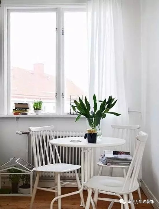 半透明的白色窗簾飄動,拂過白色圓桌,一切都顯得唯美清新。